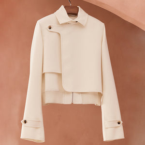 This retro short leather jacket combines style and attitude. White genuine leather, tailored fit, and perfect for day-to-night outfits.