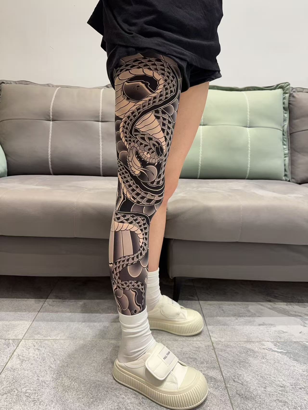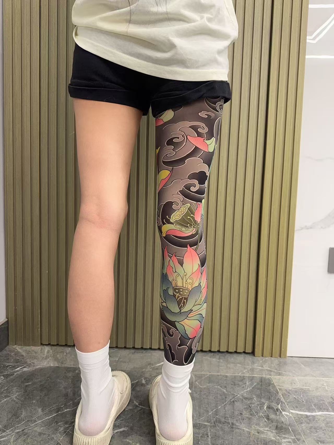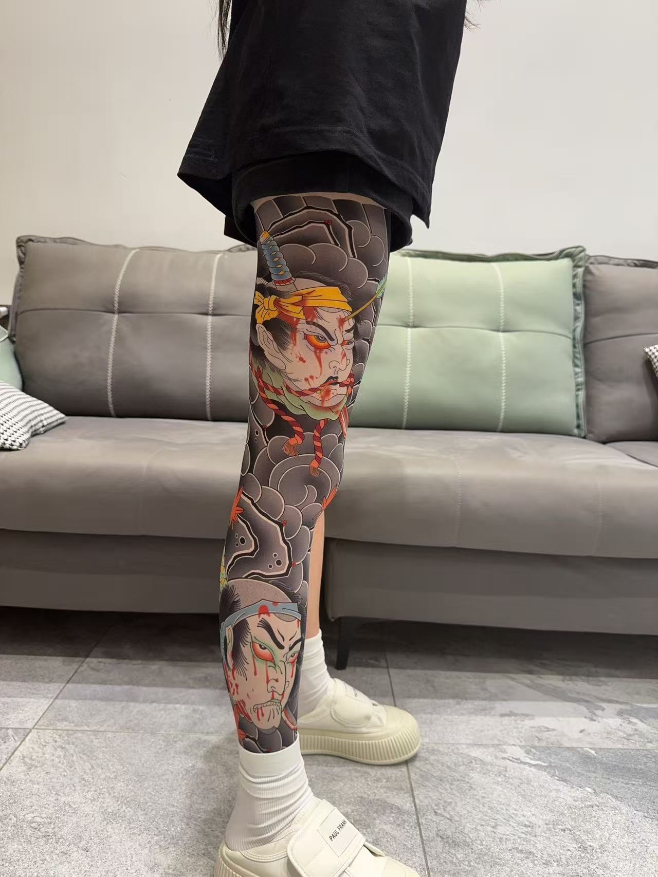 Tattoo Embroidery For Stockings Faded Single Tube Japanese Style